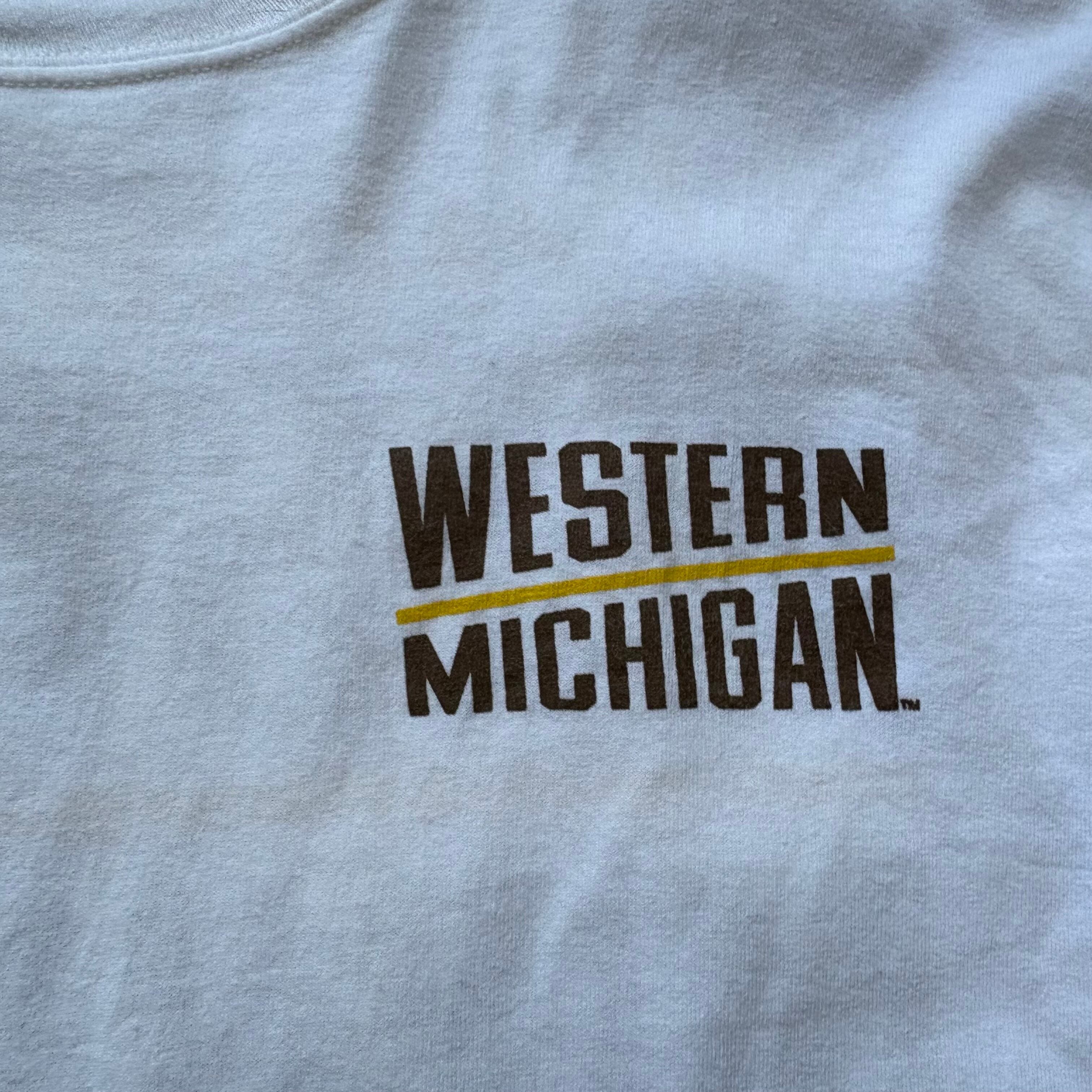 ホワイトカラーのボディに、胸元には「WESTERN MICHIGAN」のプリント、バックには大きく「WESTERN MICHIGAN UNIVERSITY」と設立年がデザインされた存在感のある一枚。