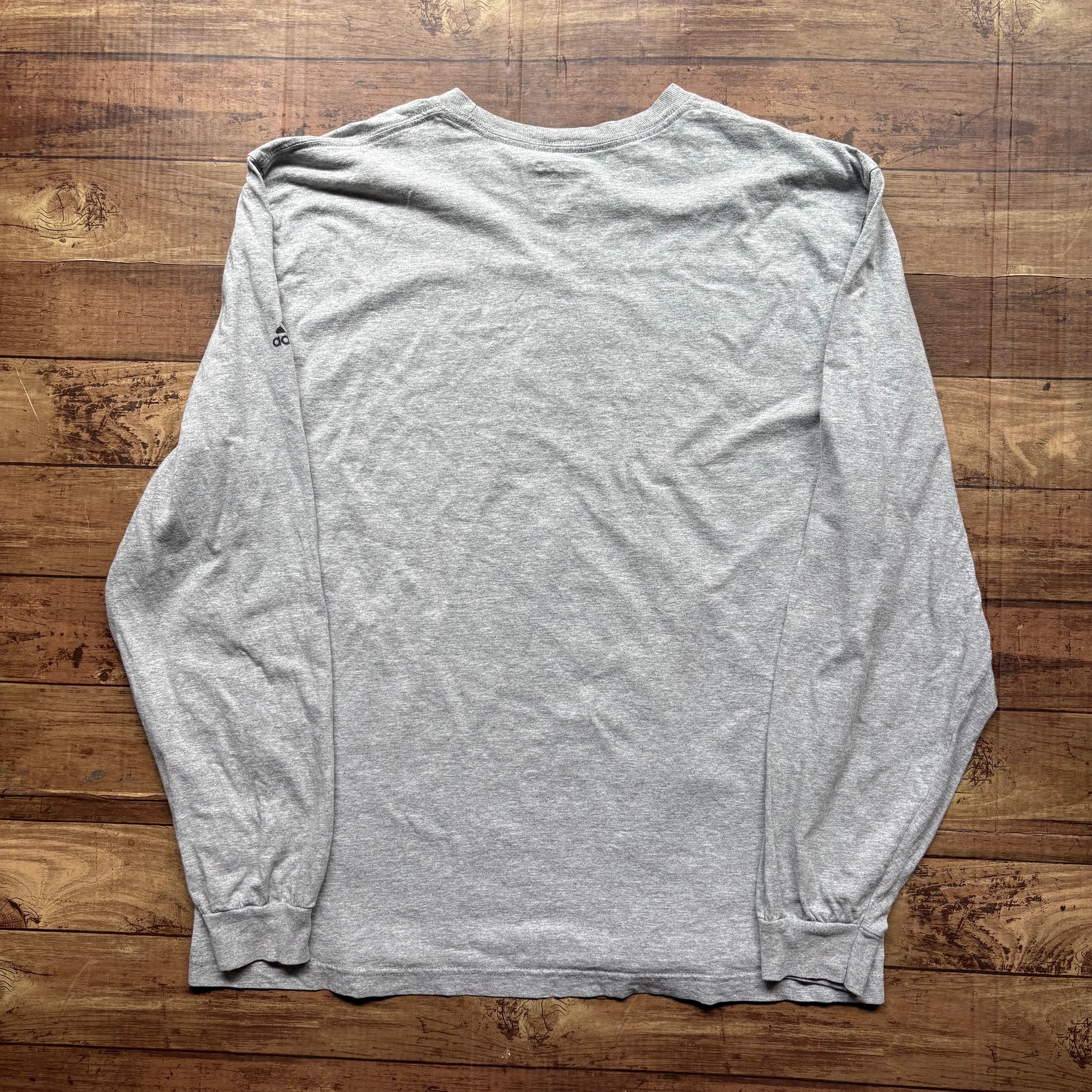 アメリカのスクールスポーツを感じさせるデザインで、フェードしたホワイトプリントがヴィンテージライクな雰囲気を演出。袖にはadidasロゴが入り、スポーツミックスやストリートスタイルにも取り入れやすい一着です。